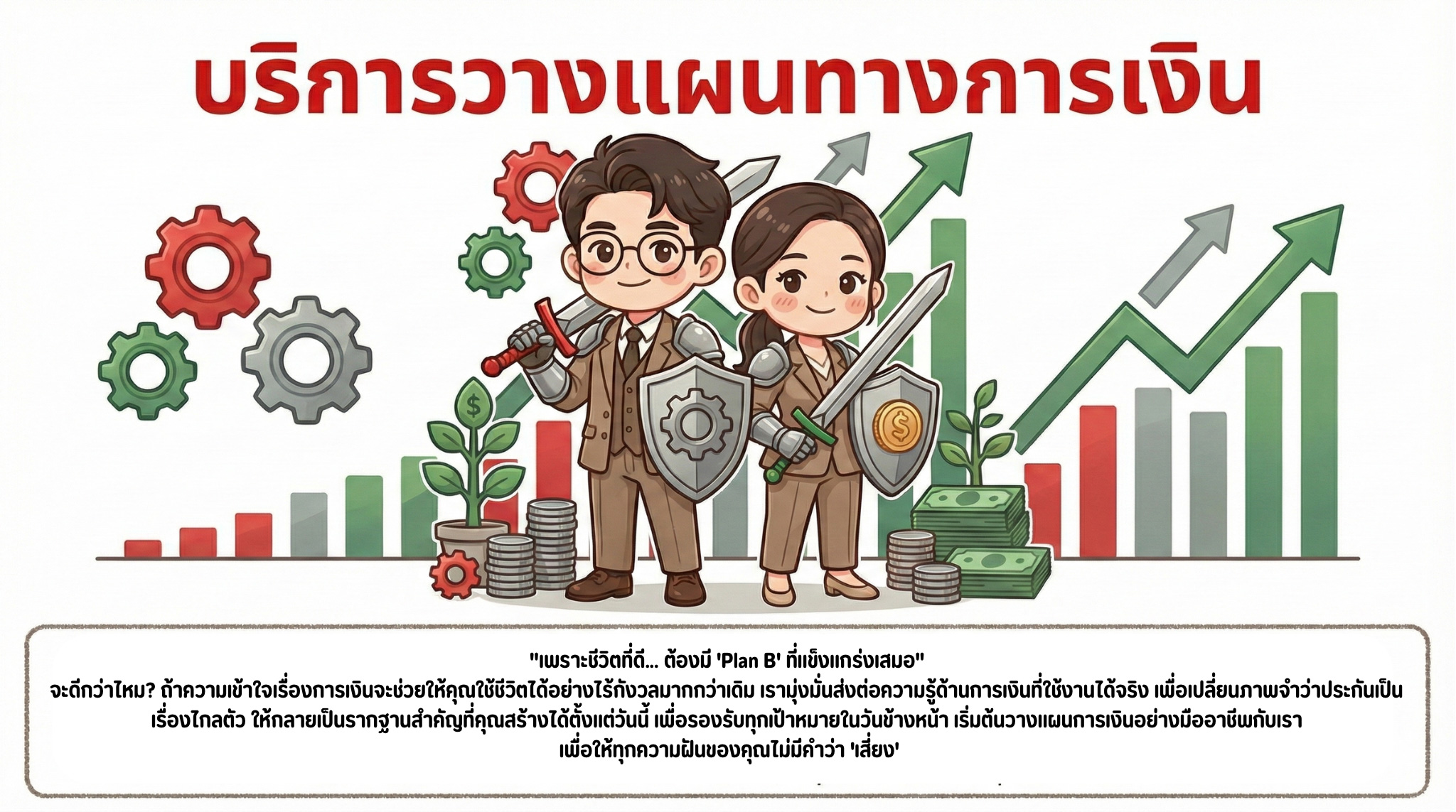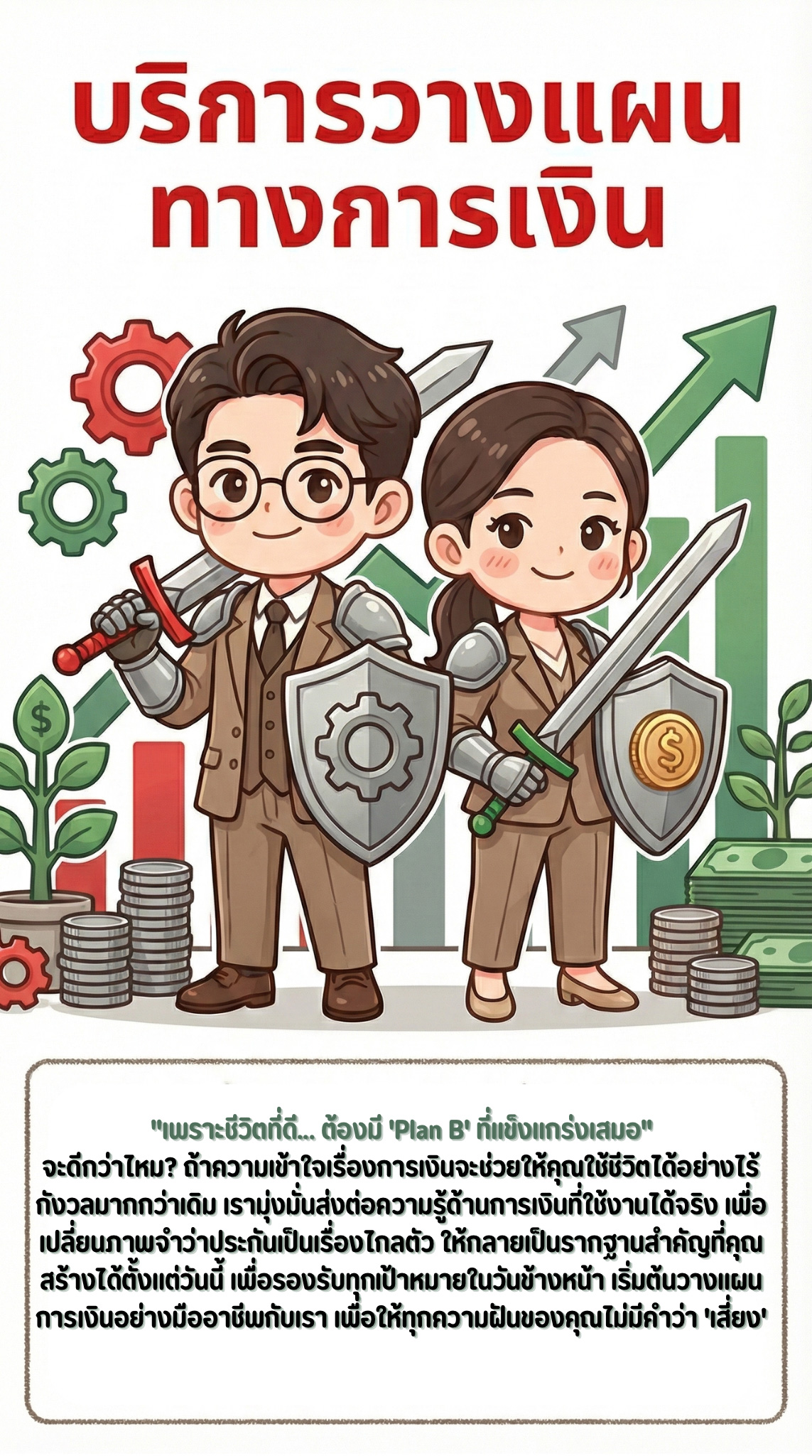 เราเป็นเพื่อนคู่คิดทางการเงิน ที่เชี่ยวชาญในการวางแผนการเงินครบวงจร เพื่อให้คุณและครอบครัวก้าวไปข้างหน้าอย่างมั่นใจ
